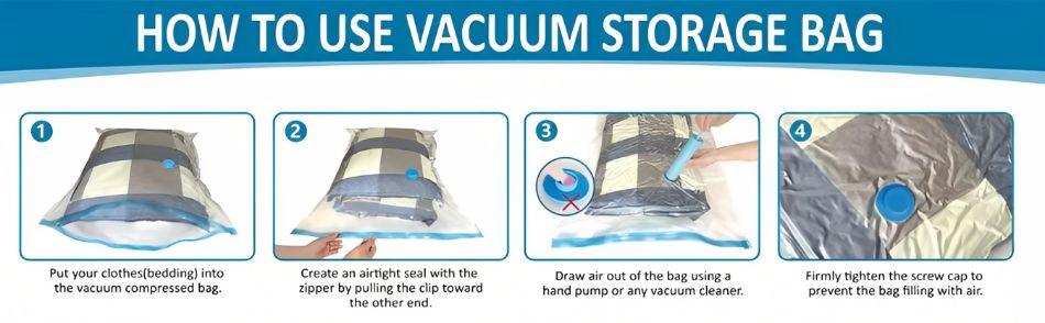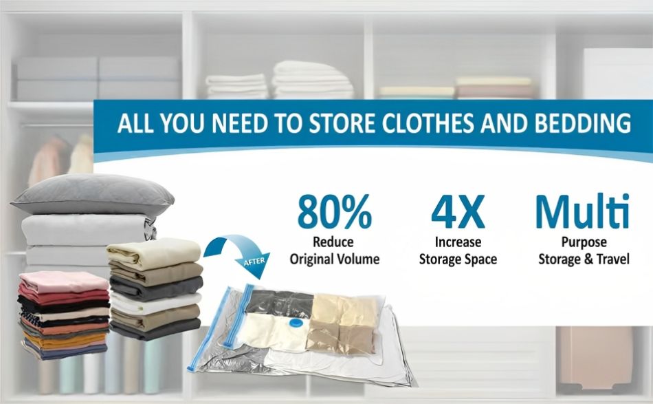 Our vacuum storage bag set is the perfect solution for seasonal storage, home space-saving organization, and travel essentials.