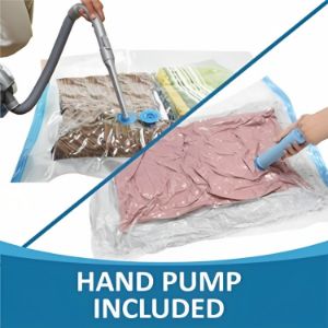 - Hand Pump Included for Easy Use: Works with any standard vacuum cleaner. Simply place items into our vacuum storage bag, seal the zipper, suction out the air, and close the cap. For convenient vacuum storage, you can also use the included hand pump.