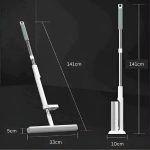 The broom features a vertical storage design for faster drying and to save space when not in use.