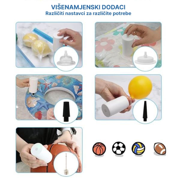 🎈 Dvostruka funkcija kao zračna pumpa – Također napuhuje vrećice za pohranu, balone i više.