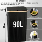 Ovaj se model može pohvaliti ojačanim šavovima, izdržljivim materijalima i estetski ugodnom crnom bojom koja se bez napora uklapa u svaki prostor – bilo da se radi o modernom uredu ili minimalističkoj kuhinji. Njegov kompaktan, ali prostran dizajn omogućuje učinkovito recikliranje bez zauzimanja previše prostora. Osim toga, kanta je opremljena okvirom od bambusa sa željeznim prstenom na koji je pričvršćena vreća za smeće, što olakšava mijenjanje i korištenje. Kanta je predviđena za vreće za smeće od 90 l, ali lako možete koristiti i veće.