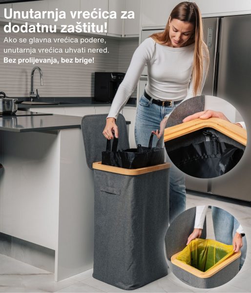 Dodatna unutarnja vreća služi kao dodatna zaštita od prolijevanja u slučaju pucanja vreće za smeće.