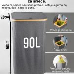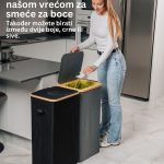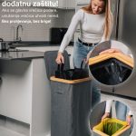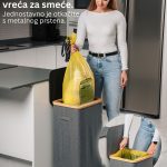 Ovaj se model može pohvaliti ojačanim šavovima, izdržljivim materijalima i estetski ugodnom sivom bojom koja se bez napora uklapa u svaki prostor – bilo da se radi o modernom uredu ili minimalističkoj kuhinji. Njegov kompaktan, ali prostran dizajn omogućuje učinkovito recikliranje bez zauzimanja previše prostora. Osim toga, kanta je opremljena okvirom od bambusa sa željeznim prstenom na koji je pričvršćena vreća za smeće, što olakšava mijenjanje i korištenje. Kanta je predviđena za vreće za smeće od 90 l, ali lako možete koristiti i veće.