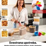 Naš komplet idealan je za pohranu grickalica poput slatkiša, granole, orašastih plodova i keksa, osnovnih namirnica poput brašna te namirnica za doručak poput kave. Pohrana u ovim prozirnim posudama jednostavna je, hrana će biti dobro organizirana i uvijek pri ruci. Nikad više nećete zaboraviti gdje ste nešto pohranili!