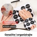 Naš stalak za začine dolazi već sastavljen, tako da možete odmah započeti s organiziranjem. Kako bismo vam to dodatno olakšali, u kompletu dobivate 144 naljepnice, od kojih je 96 unaprijed tiskano. Preostalih 48 naljepnica je prazno, savršeno za domaće začine i mješavine.