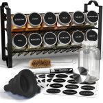Stalak za začine s posudicama za začine Deco Haus – dvoslojni metalni stalak – kuhinjski organizator, stalak za začine s 12 posudica za začine, 48 etiketa, kist, lijevak – postavite na radnu površinu ili objesite na zid