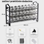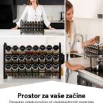 Ne glede na to, ali uporabljate le nekaj svojih najljubših začimb ali radi mešate in kombinirate različne vrste, boste našli rešitev! Vse začimbe shranite v 24 ločenih kozarčkih. Na trinivojskem stojalu jih lahko razporedite po želji. Kozarčki so iz prozornega stekla, tako da ni treba ugibati, kaj je v njih, niti preverjati, ali morate po dodatno zalogo.