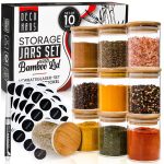 Hermetički spremnici s poklopcem od bambusa – Set od 10 komada – Kutije za čaj, začine, kekse, spremnici, staklenke – 16 naljepnica & kreda – Ø 6,5 cm, visina 8,5 cm, 150 ml