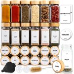 Set od 24 staklenke za začine Deco Haus s poklopcima od bambusa – etikete, lijevak, kist, marker – kompatibilno sa stalcima za začine s 4 police – staklenke za pohranu i doziranje 120 ml, 10,5 x 4,3 cm