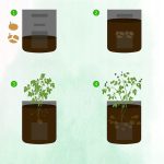 Korak 3: Napunite stalak zemljom tako da su gomolji potpuno prekriveni. Ako zemlja nije potpuno suha, bolje je pričekati da biljke niknu pa zatim zaliti, pratiti rast i ponavljati dodavanje vode i zemlje dok biljke ne izrastu do vrha stalka.