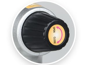 Adjustable temperature regulator provides perfect flame control, allowing the flame temperature to reach up to 1300 °C / 2372 °F. Press the button to ignite the flame, then turn the safety lock clockwise, and the flame will keep burning without continuous pressure. Baking and cooking become much easier.