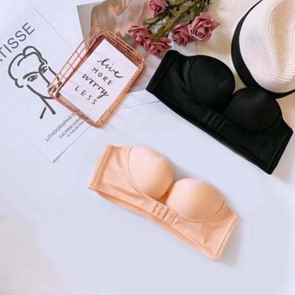 Potpuno neupadljiv grudnjak pogodan za nošenje ispod svake haljine ili bluze! Paket uključuje 1 x crni i 1 x bež grudnjak bez naramenica.