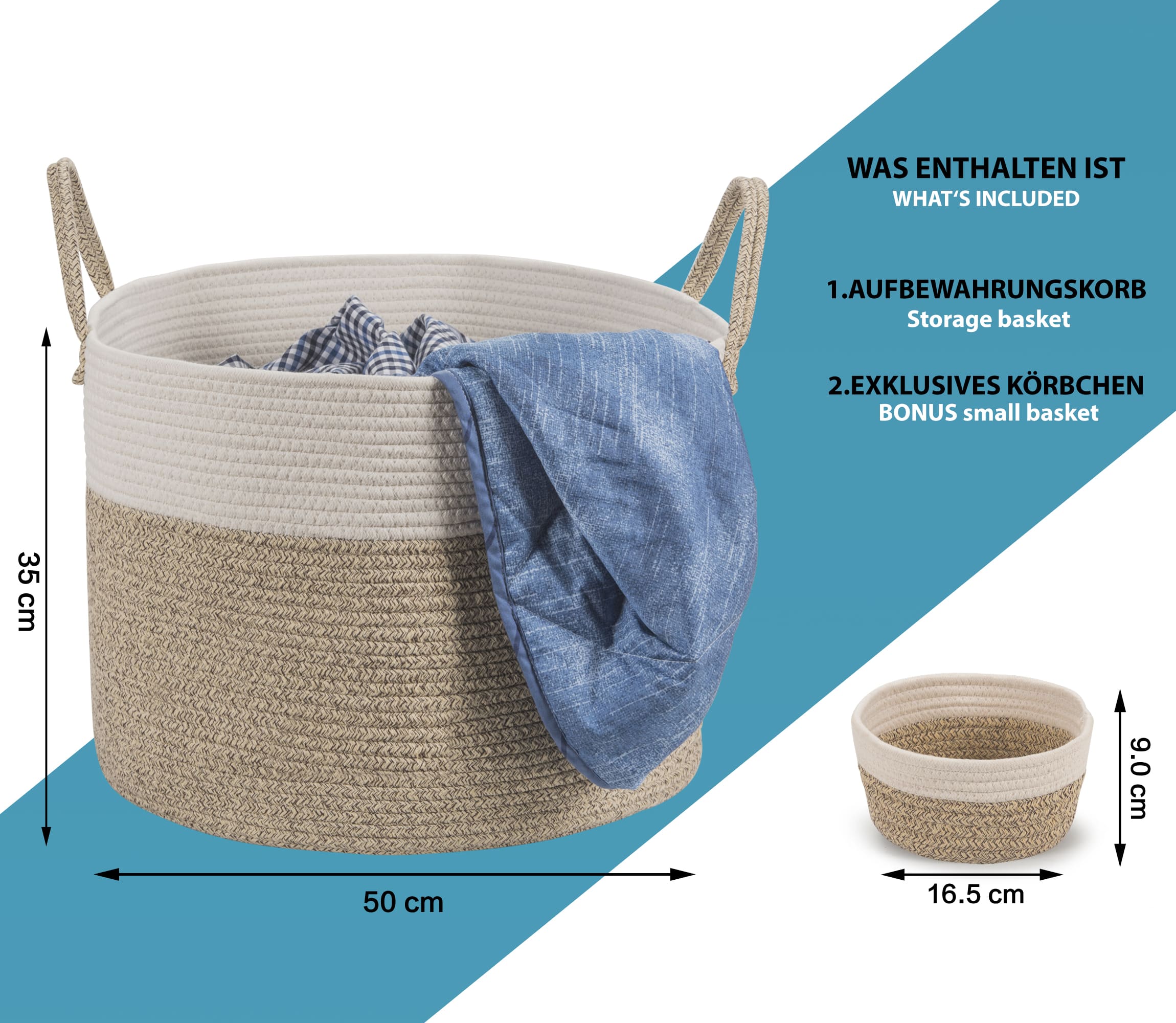Košara za rublje Deco Haus – ručno izrađena, ukrasna košara za rublje od tkanog pamučnog užeta – spremite knjige, odjeću, igračke, deke, jastuke – sklopive, prijenosne, s ručkom – mala košara uključena – smeđa