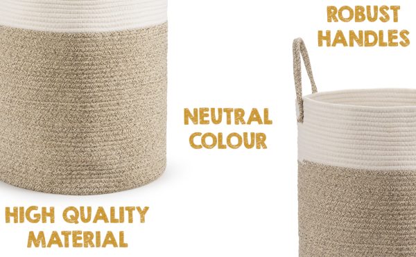 Naše košare dostupne su u 2 neutralne boje koje se besprijekorno uklapaju u vaš dom. Bilo da je vaš namještaj industrijski moderan ili stilski vintage, bilo da košaru držite u kupaonici, dnevnom boravku ili dječjoj sobi – voljet ćete svoje nove tkane košare.