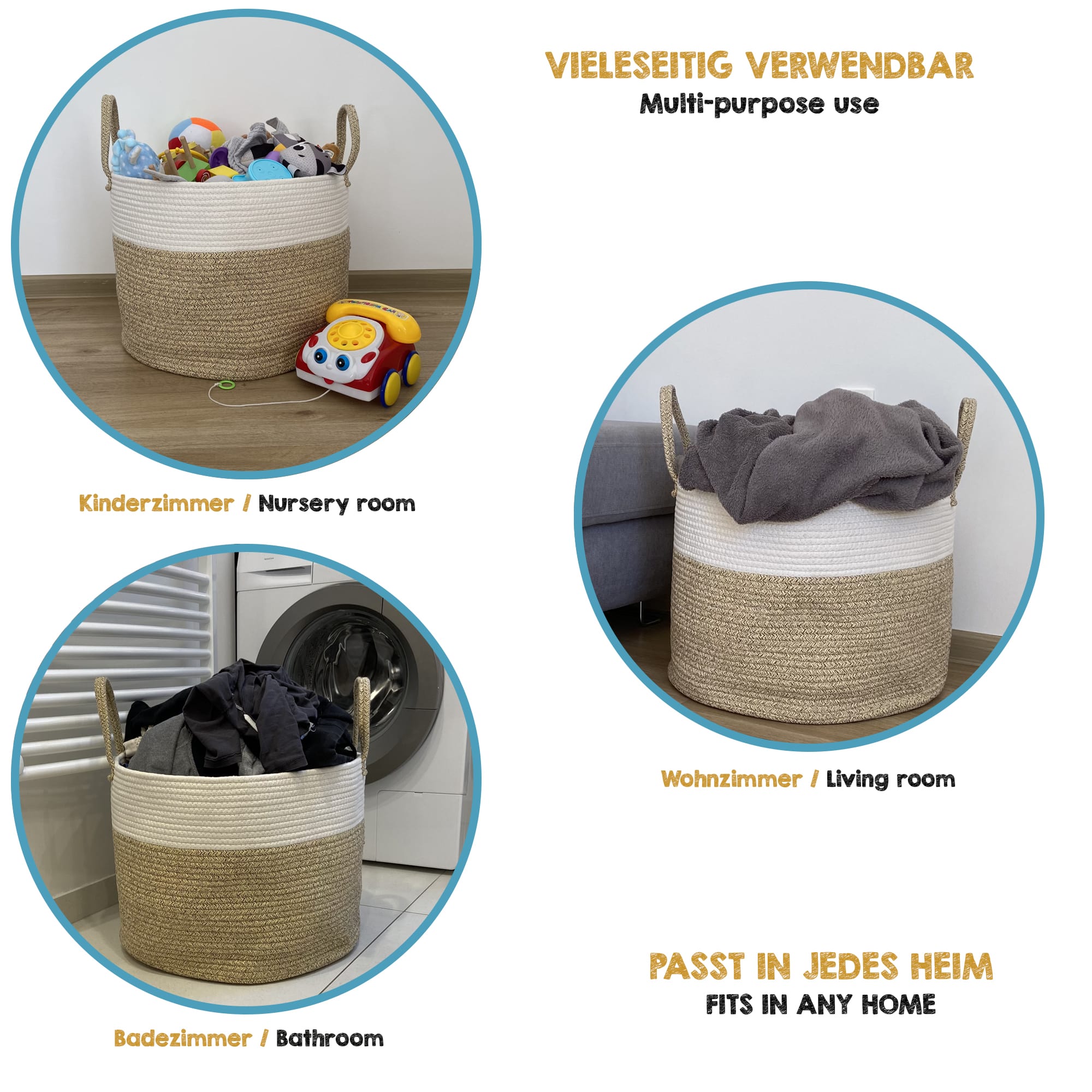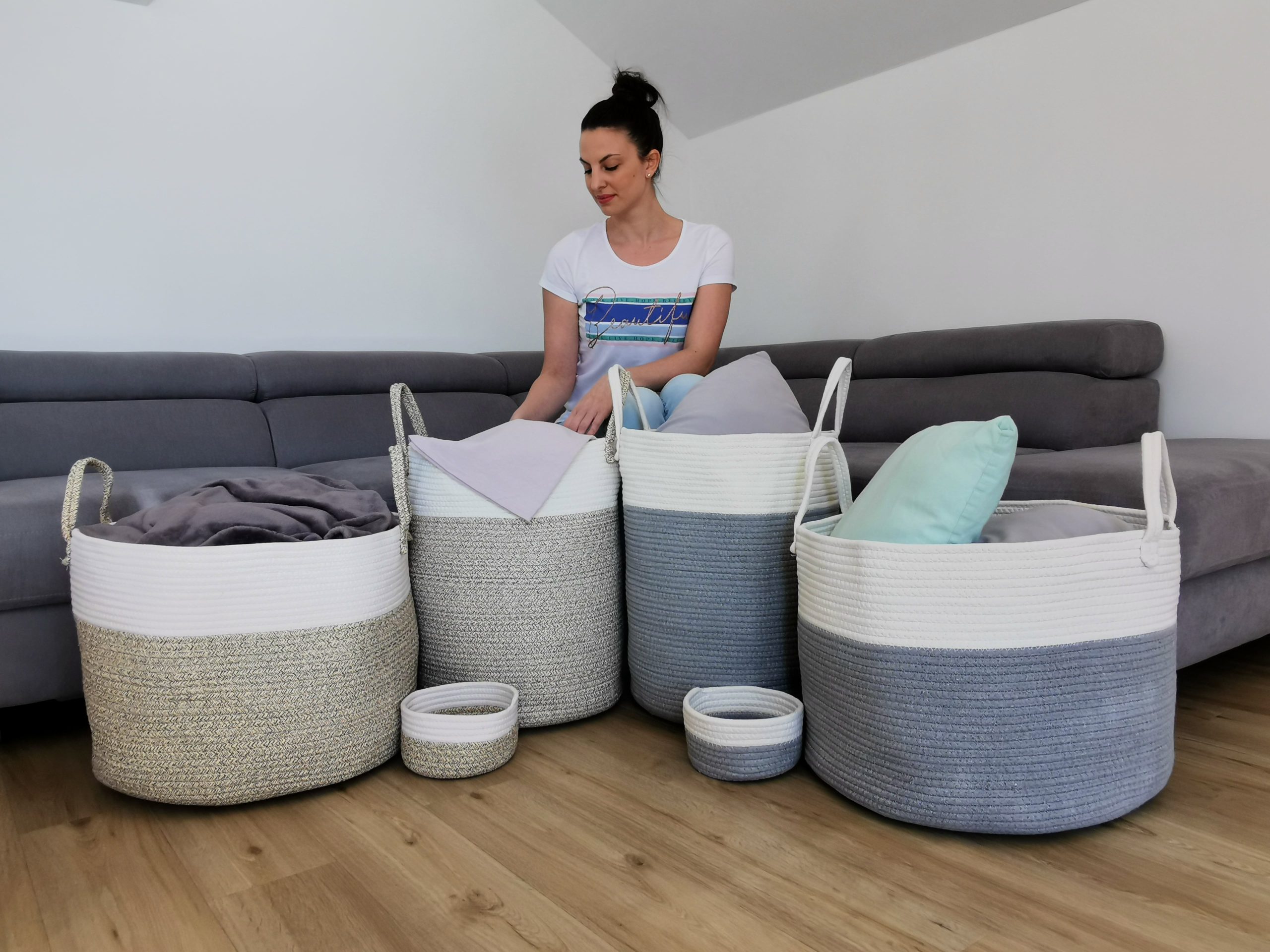 SVESTRANA KOŠARA ZA ORGANIZACIJU – Ne samo za rublje! Naša košara od užeta također može služiti za spremanje knjiga, igračaka, ručnika, odjeće, deka i jastuka. Što god zamislite, možete spremiti u našu pletenu košaru!