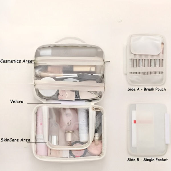 S odvojivom razdjelnom pločom, torba se dijeli na dvije strane—jedna za četke i druga za maske i šminku—održavajući sve urednim.