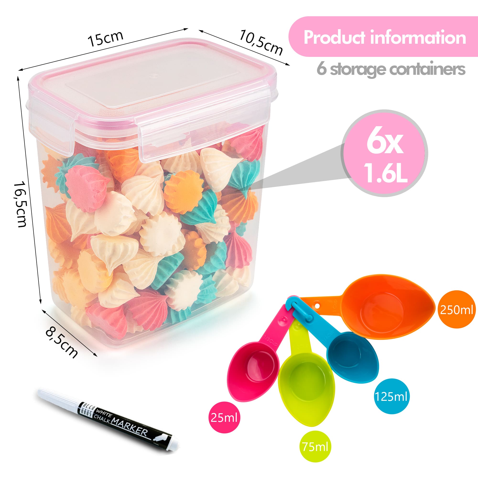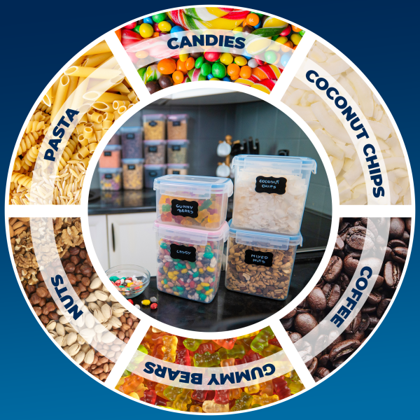 Naš je komplet idealan za grickalice kao što su slatkiši, granola, orašasti plodovi i kolačići, namirnice poput brašna te stvari za doručak poput kave u zrnu. Čuvajte svoju hranu u ovim prozirnim posudama za jednostavno spremanje, organizaciju i pristup kad god su vam potrebne. Od sada ne morate pamtiti gdje se što nalazi!