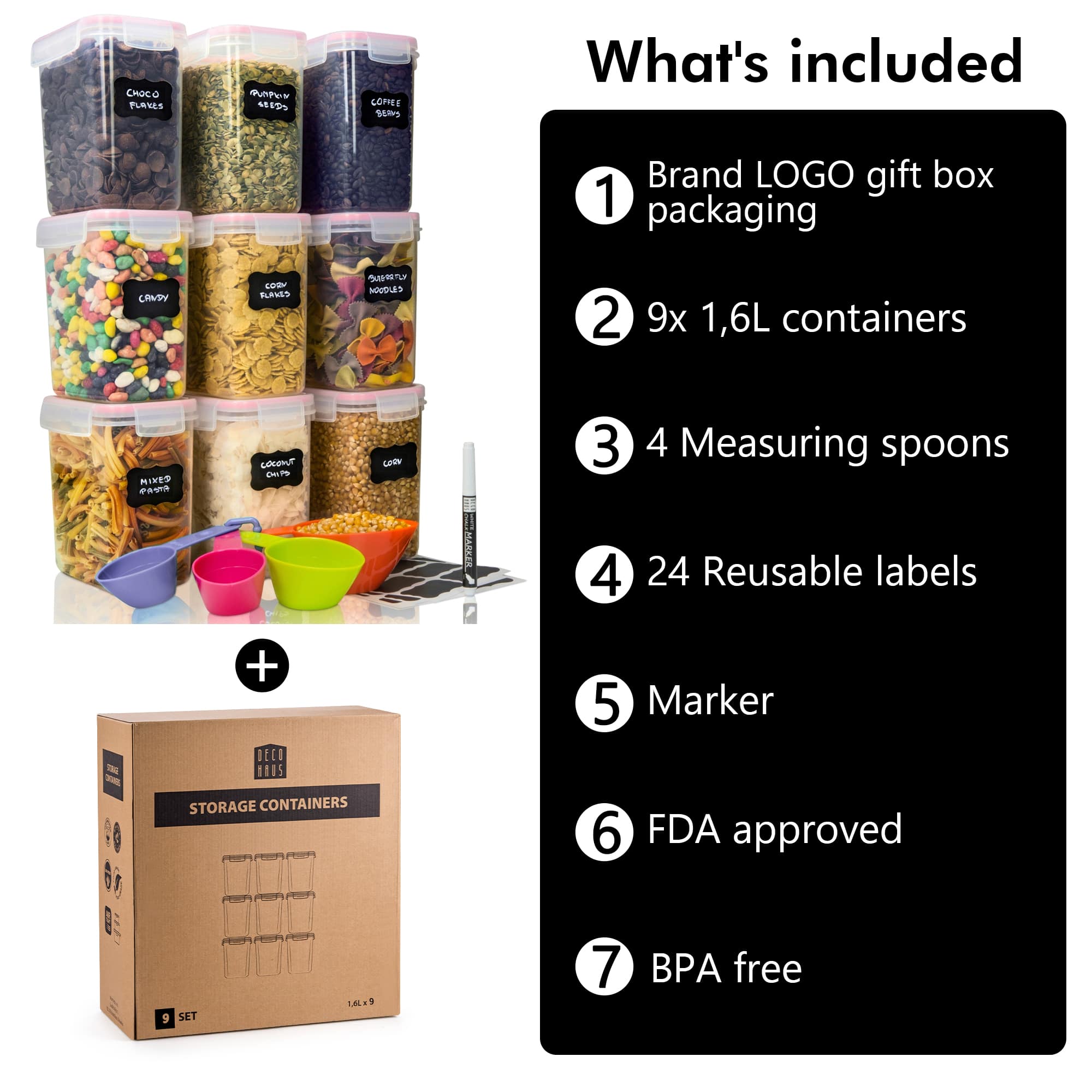 Uz vašu kupnju uključujemo nekoliko dodatnih stavki kako bismo dodali vrijednost i dodatno poboljšali vašu organizaciju. U svakom kompletu dobivate naljepnice za višekratnu upotrebu i vrlo kvalitetnu olovku za jednostavno označavanje. Dobit ćete i nekoliko mjernih šalica koje će vam pomoći u vašim kuharskim avanturama.