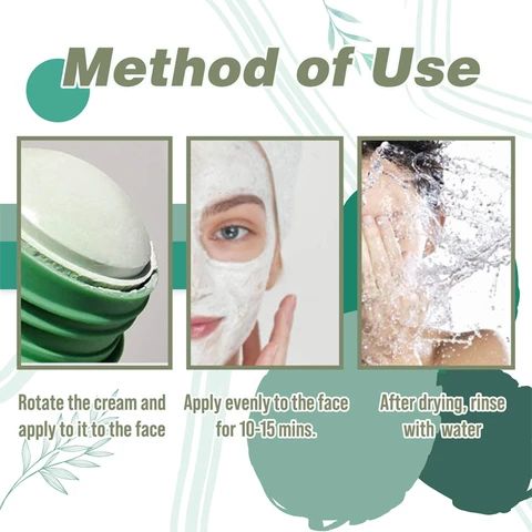 Enakomerno nanesite na suh obraz, pri tem se izogibajte ustnicam in vekam. Po nanosu pustite delovati 10–15 minut, da se posuši. Sperite s toplo vodo in nežno vmasirajte v kožo.