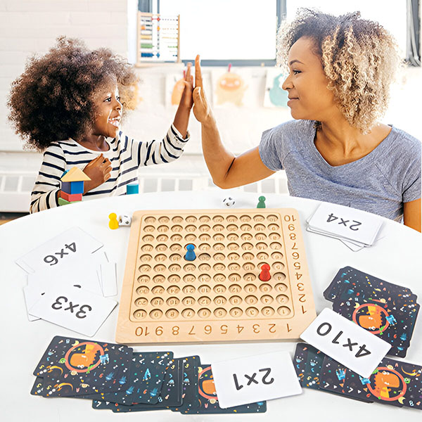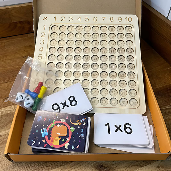 Whether using dice or cards, FunMath offers two different game modes to keep things interesting. Kids can either roll the dice and multiply the numbers or draw cards to find the correct answer on the board. The first one to get it right wins the round! This makes the game versatile and suitable for solo play or group fun.
