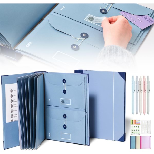 Uključuje 10 proširivih omotnica (6 velikih, 4 polovičnih), a svaka može držati do 10 listova.