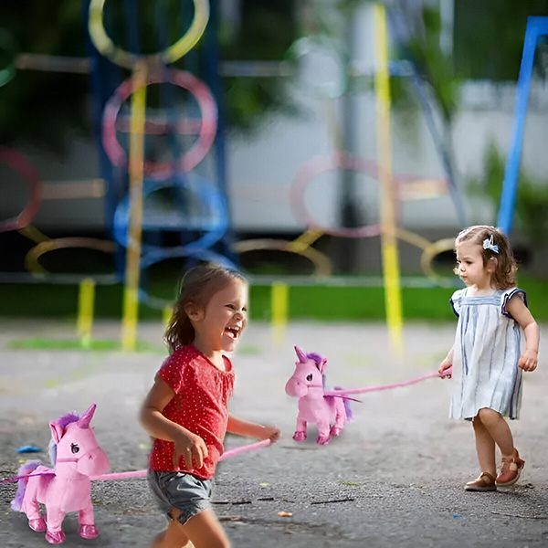 Zamijenite obične igračke svoje djece ovim smiješnim jednorogom koji hoda, pjeva i dražesno njišti jednim dodirom! Djeca će voljeti mijenjati dvije pjesme, stiskati povodac i ušuškati se u njegovu ultra-mekanu pamučnu dlaku. Uživajte u osvijetljenim licima svoje djece dok se igraju sa svojim novim najboljim prijateljem.