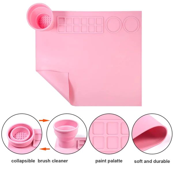 Our first ever mat with a built-in collapsible brush cleaning cup. The brush cleaner cup is designed to hold water and clean paint brushes.