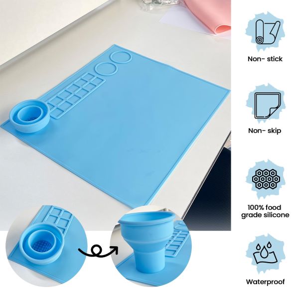 Silicone Craft Mat for DIY Projects, Heat-Resistant Non-Stick Waterproof Pad for Painting, Resin, Clay & Jewelry Making, Blue | ARTMAT