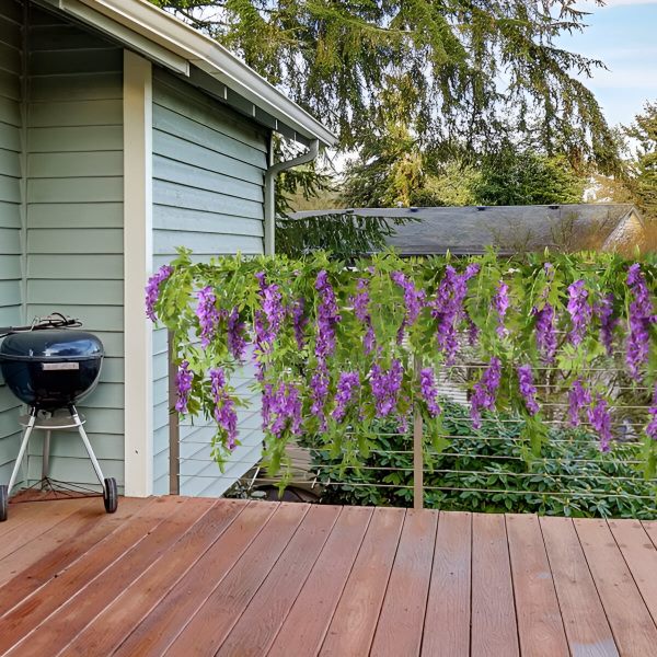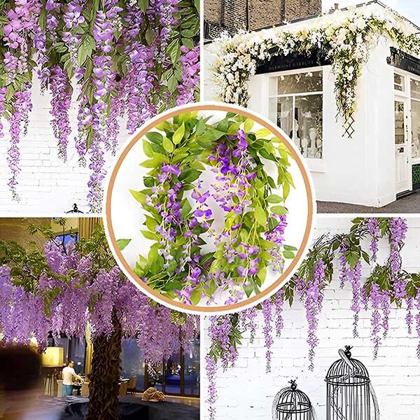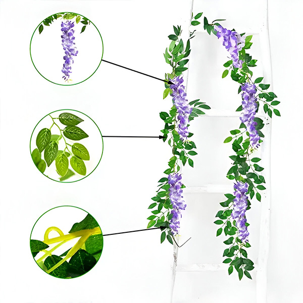 Nema potrebe baviti se vinovom lozom ili cvijećem koje blijedi i vene. Naša simulacija glicinije izrađena je od visokokvalitetne svile i fleksibilne plastike,zbog čega zauvijek zadržavaju svoju vitalnost. Ovo izdržljivo cvijeće dizajnirano je da traje, pružajući vam prekrasno i trajno rješenje za dekor.