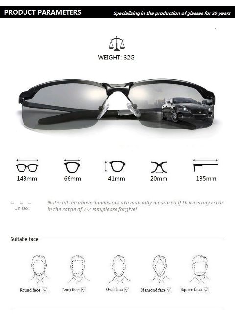 Ove sunčane naočale puno su bolje od prethodne vrste sunčanih naočala i to iz tri razloga – kad se krećete u zatvorenom prostoru ili na otvorenom, leće se automatski prilagođavaju uvjetima smanjenog osvjetljenja. Drugo, polarizirane leće smanjuju odsjaj i odbljesak. UV zaštitni slojevi štite protiv štetnih UVA / UVB zraka