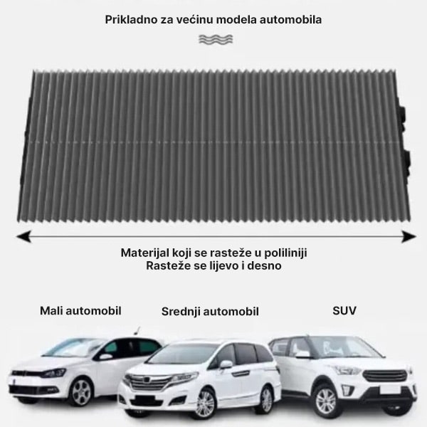 Ova sjenila su dizajnirana da odgovaraju širokom rasponu vozila, uključujući automobile, kombije, kamione i SUV-ove. Univerzalno pristajanje omogućuje jednostavno prilagođavanje širine prema željenoj mjeri.