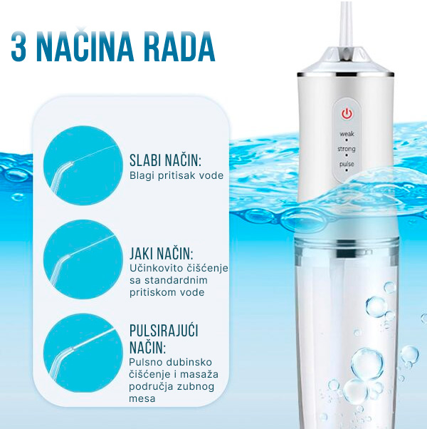 🦷 Prenosiv i prilagodljiv, ovaj zubni tuš pomaže vam da postignete zdraviji osmijeh u pokretu.